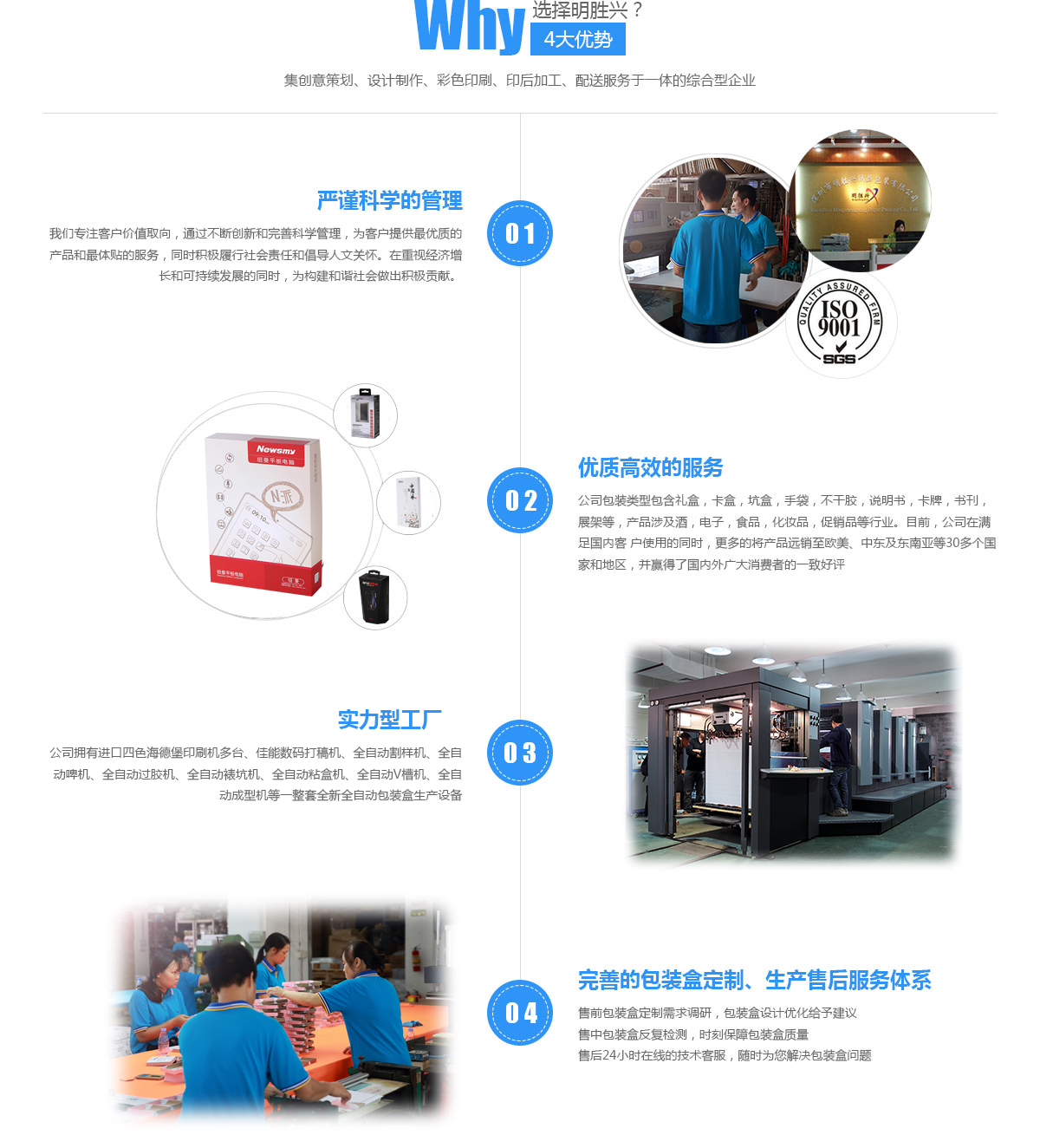 Welcome to Shenzhen Ming Sheng Xing packaging paper products Co. ltd.. Division I is a company specializing in the design to print all kinds of promotional pictures, handbags, product brochures, product packaging boxes, craft gift boxes and other business paper packaging enterprises. The company has Roland four-color four open printing machine, Heidelberg four color printing press and more than a series...